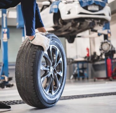Tyre and wheel services in automobiles focus on maintaining safety, performance, and ride comfort. This includes checking tyre pressure, tread depth, and alignment, rotating tyres for even wear, balancing wheels, and replacing worn or damaged tyres. Proper tyre and wheel maintenance ensures better grip, fuel efficiency, handling, and overall vehicle stability, while also extending the lifespan of both tyres and wheels.