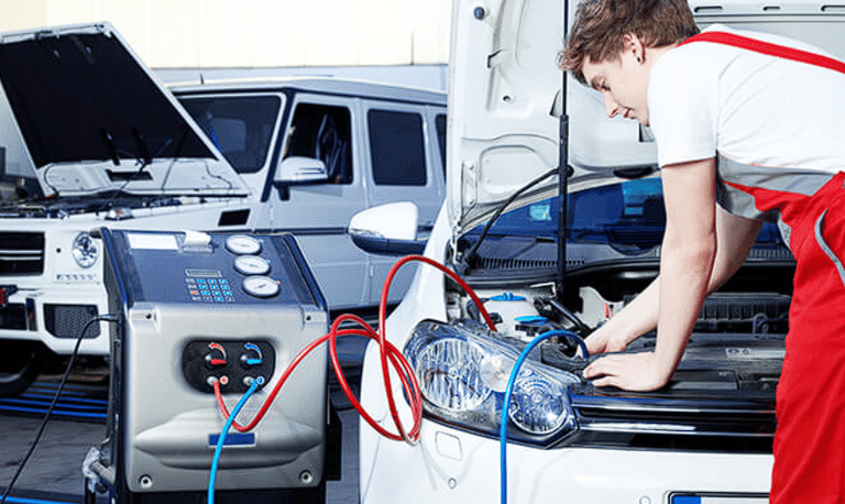 Air conditioning service in automobiles involves inspecting, maintaining, and repairing the AC system to ensure efficient cooling and comfort inside the vehicle. This includes checking refrigerant levels, cleaning or replacing filters, inspecting compressors and condensers, and ensuring proper airflow. Regular AC servicing not only keeps the cabin cool but also improves air quality, prevents unpleasant odors, and ensures the system runs smoothly without unnecessary strain on the engine.